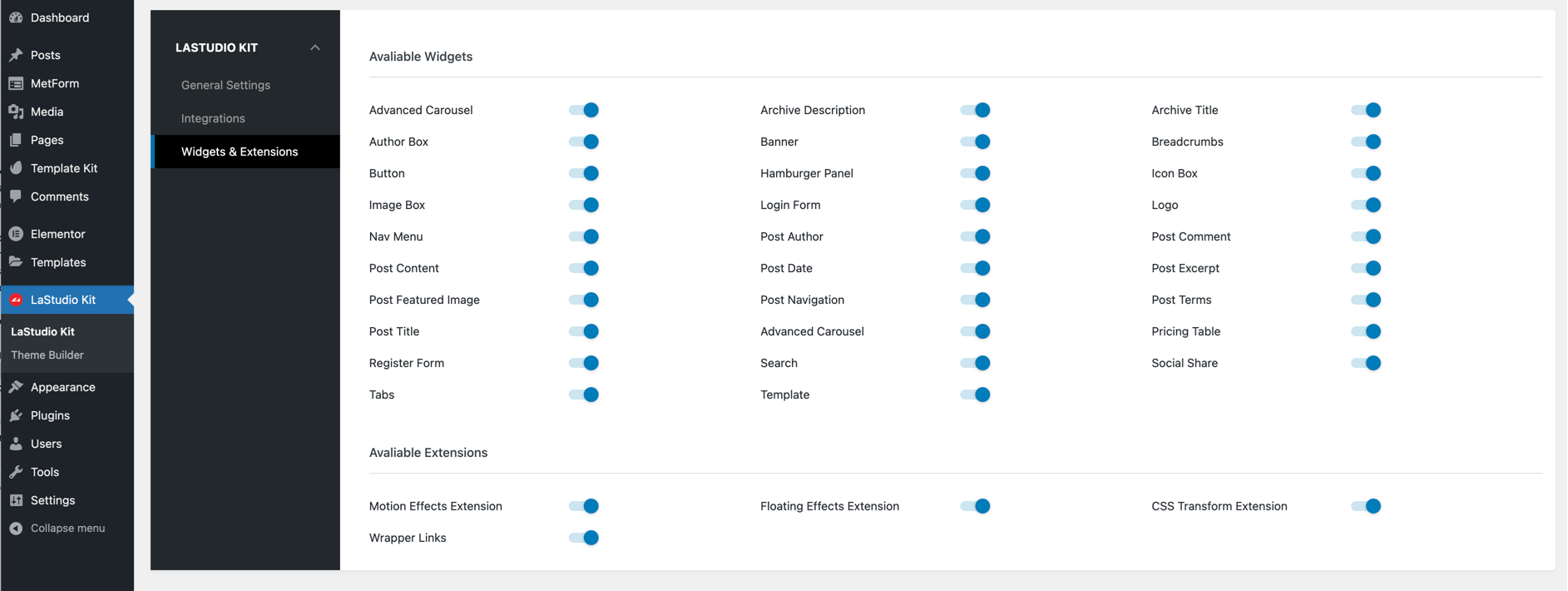 LA-Studio Element Kit for Elementor is light weight and we also gave you the control to enable only the elements you actually use on your website for faster performance.